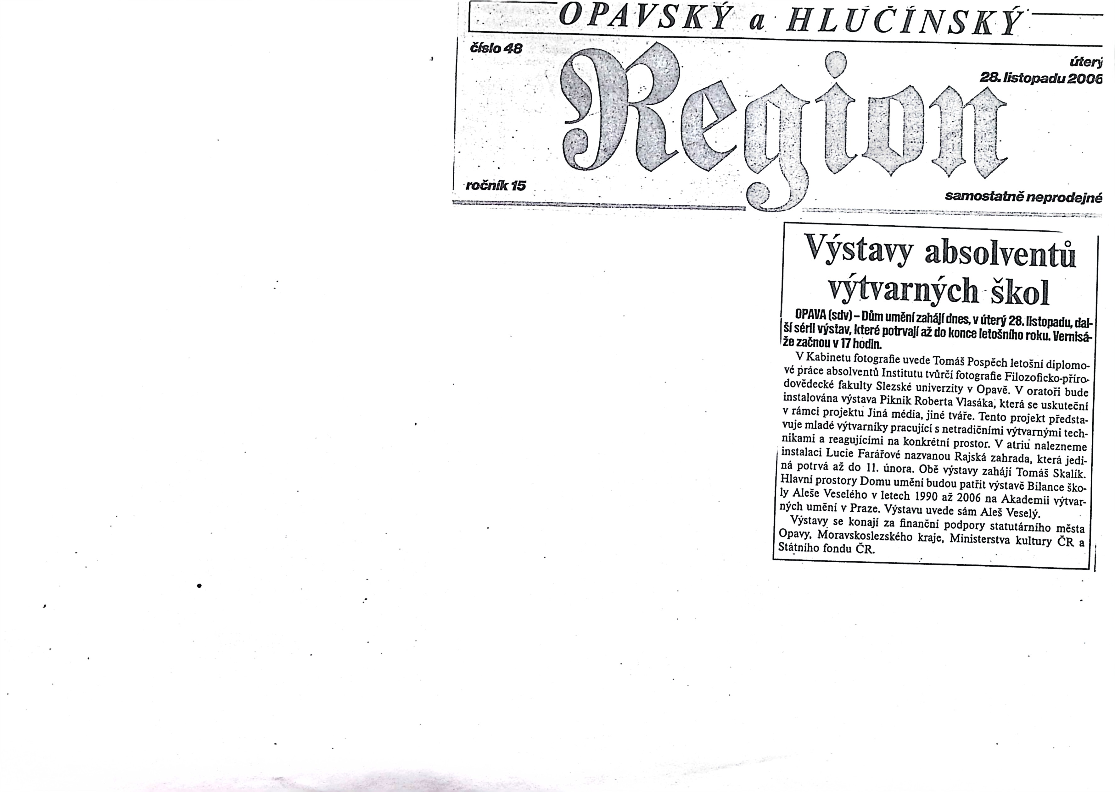 Bilance - Aleš Veselý a studenti Ateliéru monumentálního sochařství AVU Praha, Robert Vlasák - Piknik, Lucie Farářová - Rajská zahrada, Diplomové práce 2006 - Institut tvůrčí fotografie FPF SU v Opavě