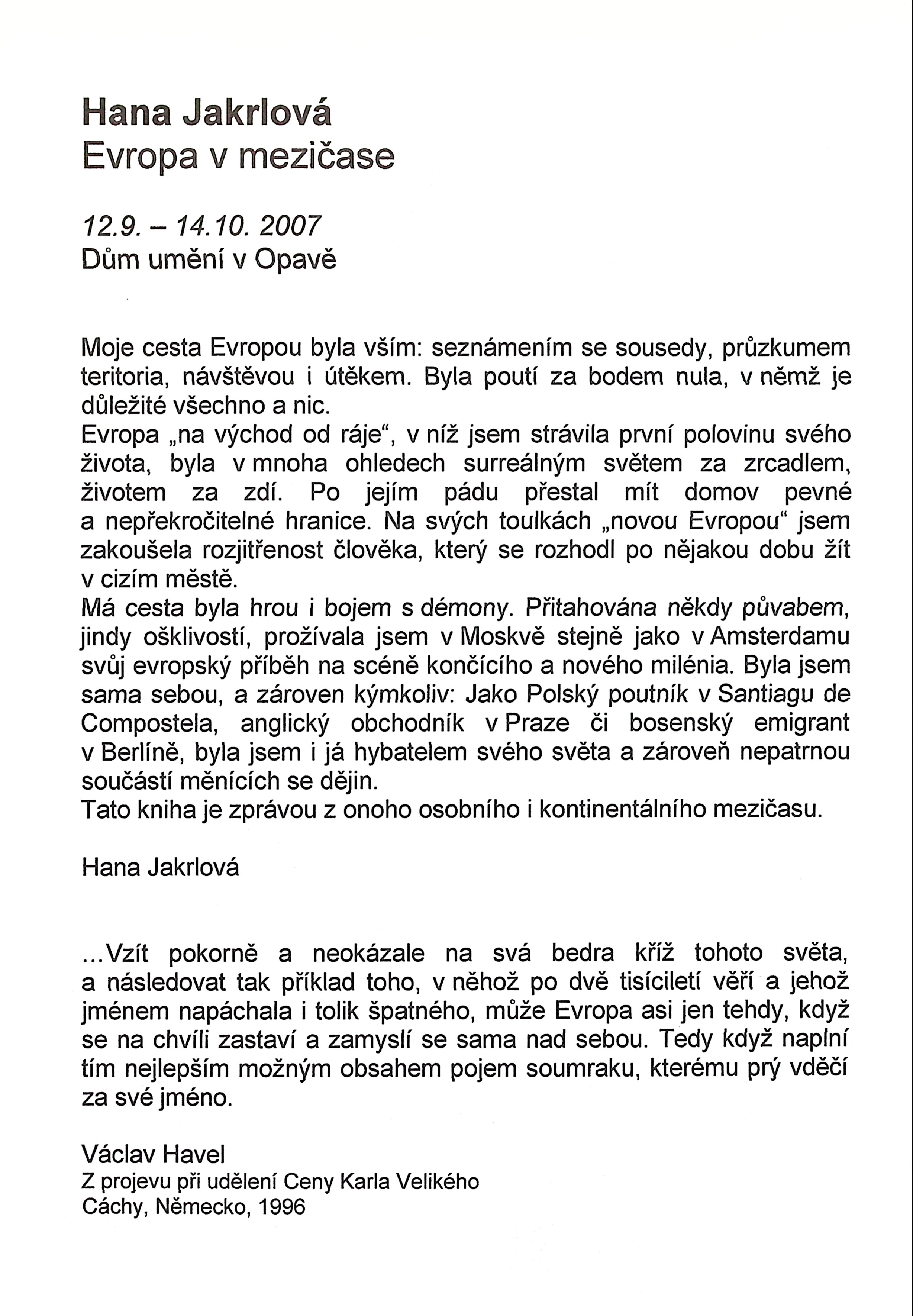 Hana Jakrlová - Evropa v mezičase