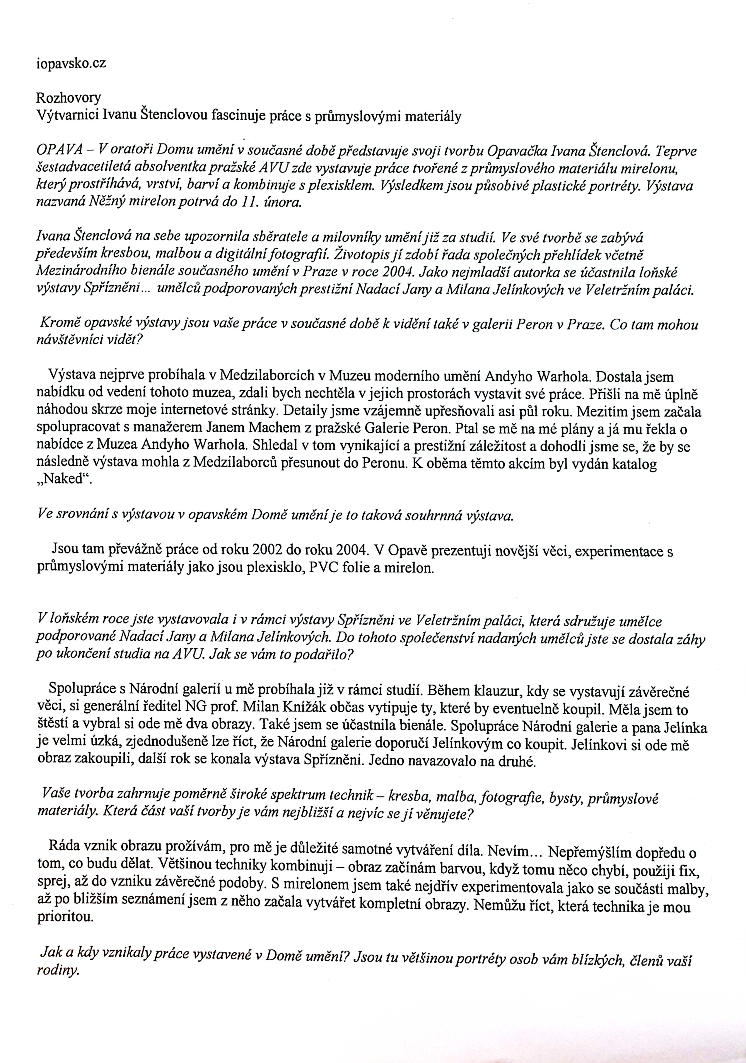 Ivana Štenclová popis