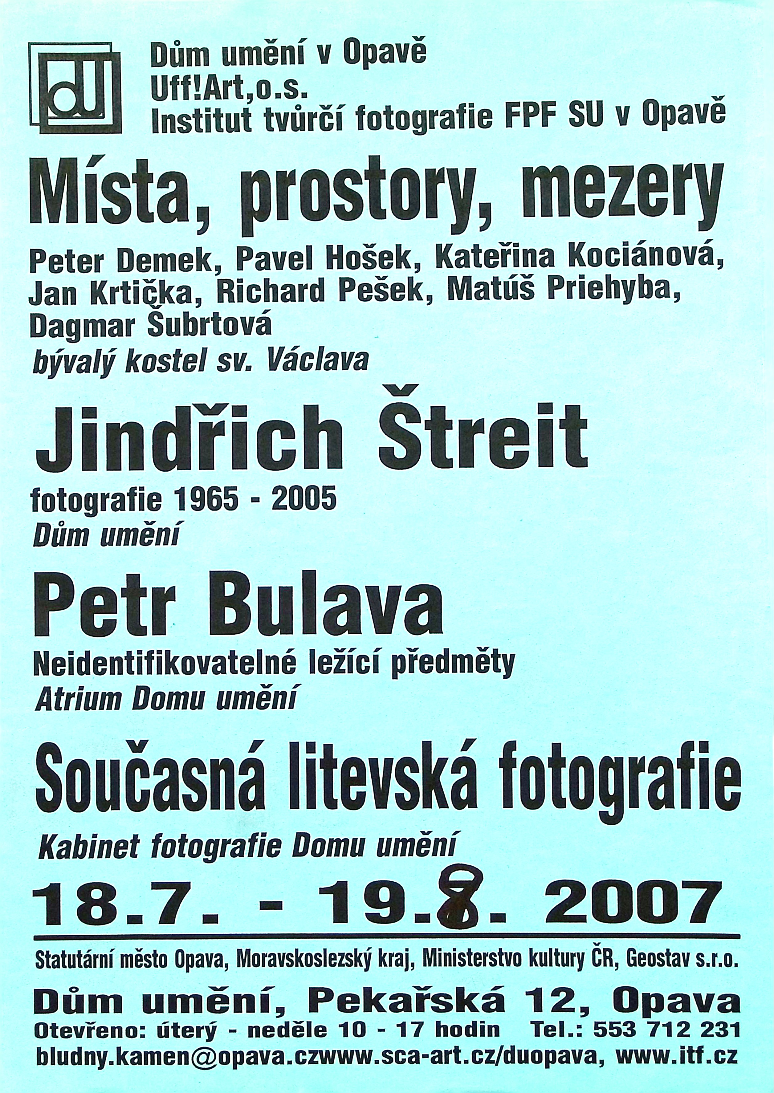 Jindřich Štreit - fotografie 1965 - 2005, Místa, prostory, mezery - Petr Demek, Pavel Hošek, Kateřina Kociánová, Jan Krtička, Richard Pešek, Matúš Priehyba, Dagmar Šubrtová, Neidentifikovatelné ležící předměty - Petr Bulava, Současná litevská fotografie