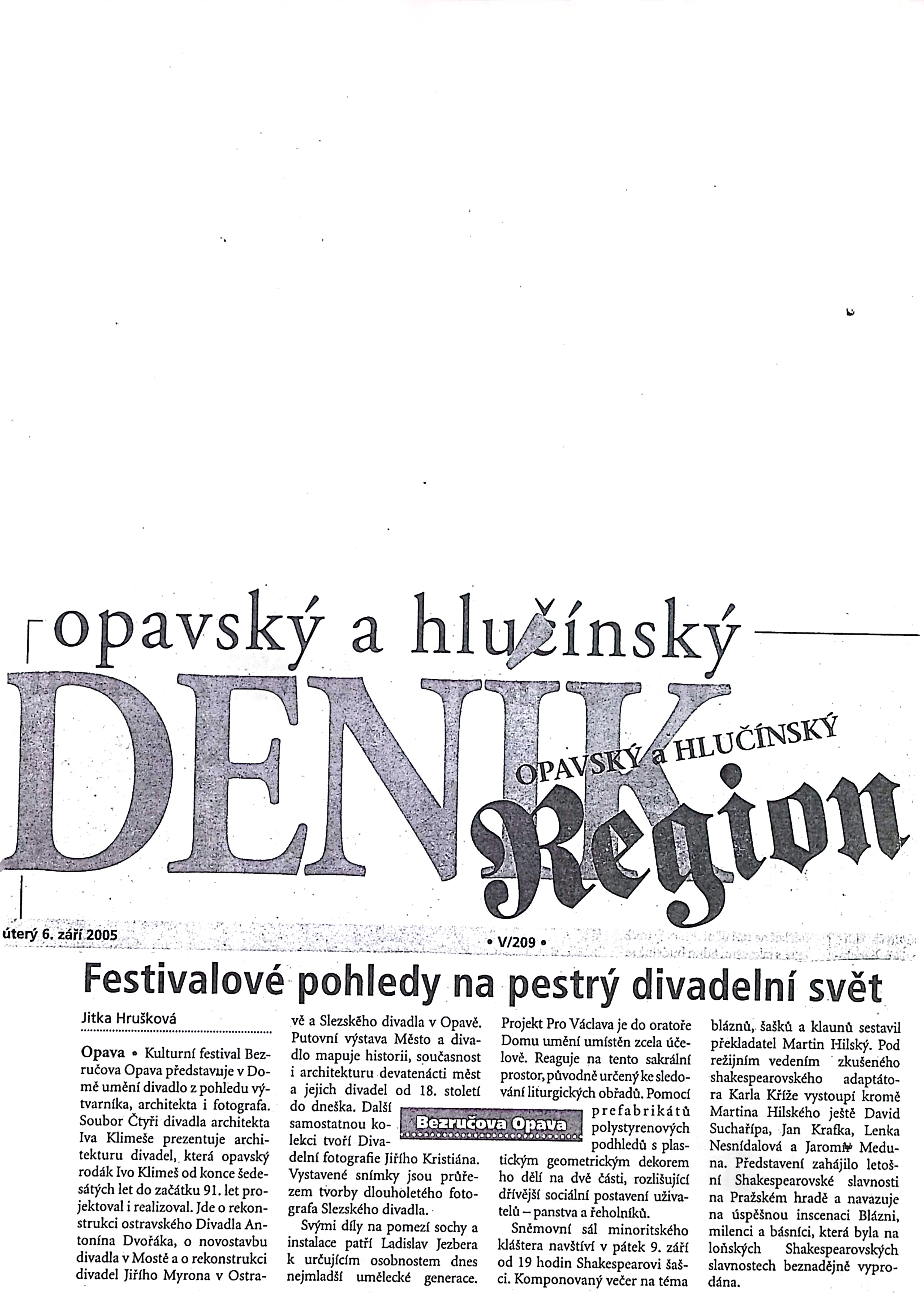 Město a divadlo, Čtyři divadla architekta Ivo Klimeše, Ladislav Jezbera - Pro Václava, Jiří Kristián - S úctou Foma Fomič