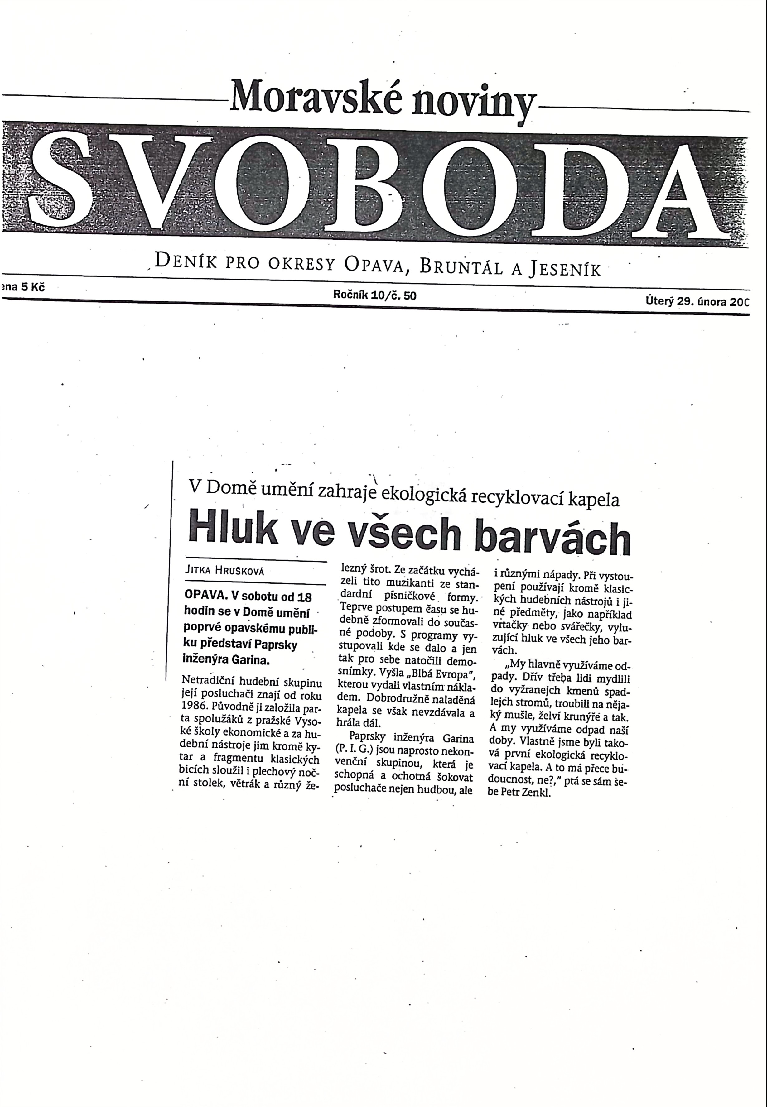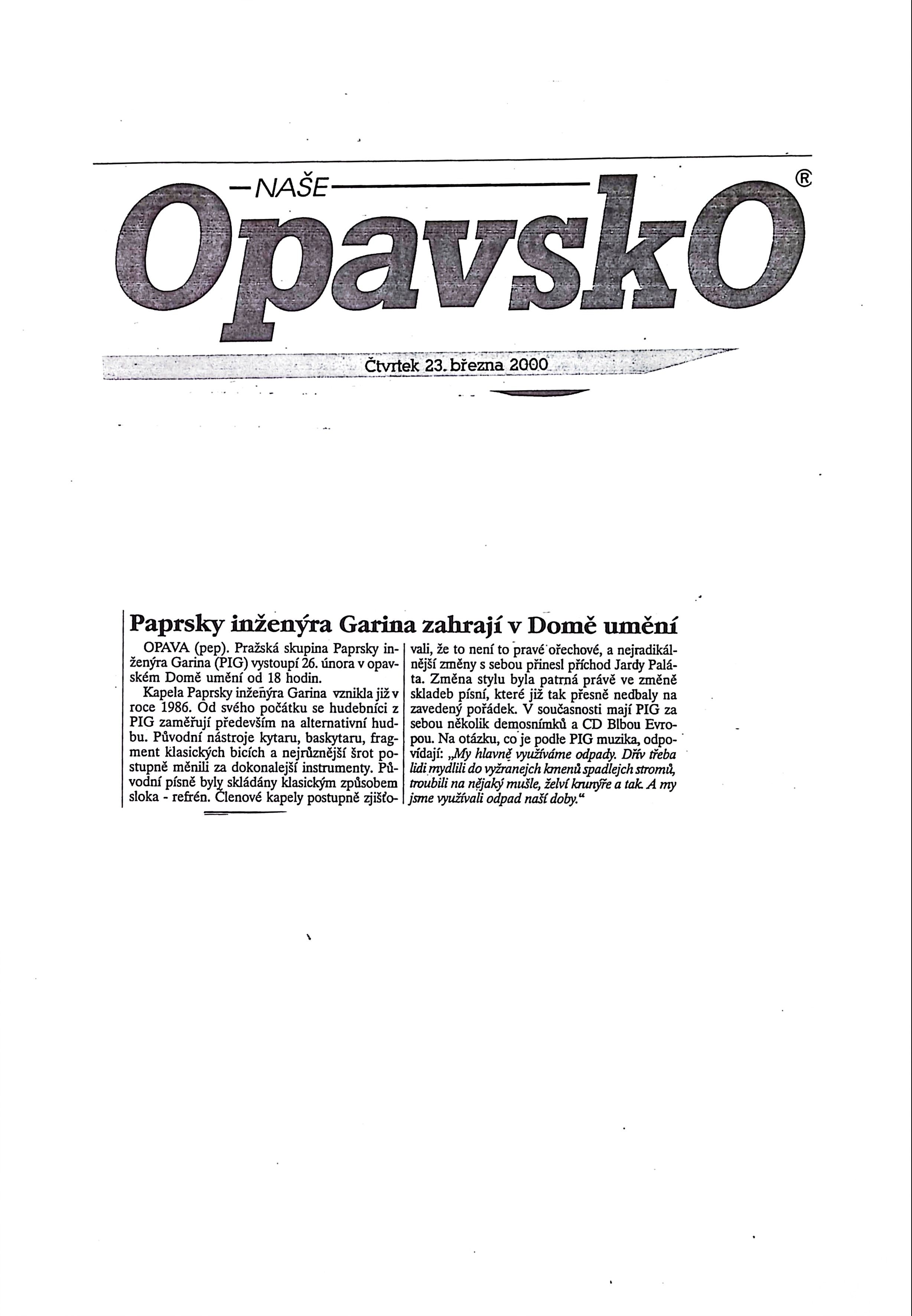 datum 2000-02-26 místo Dům umění v Opavě druh akce Koncert etapa Dům umění (1999–2008) popis Paprsky inženýra Garina - koncert