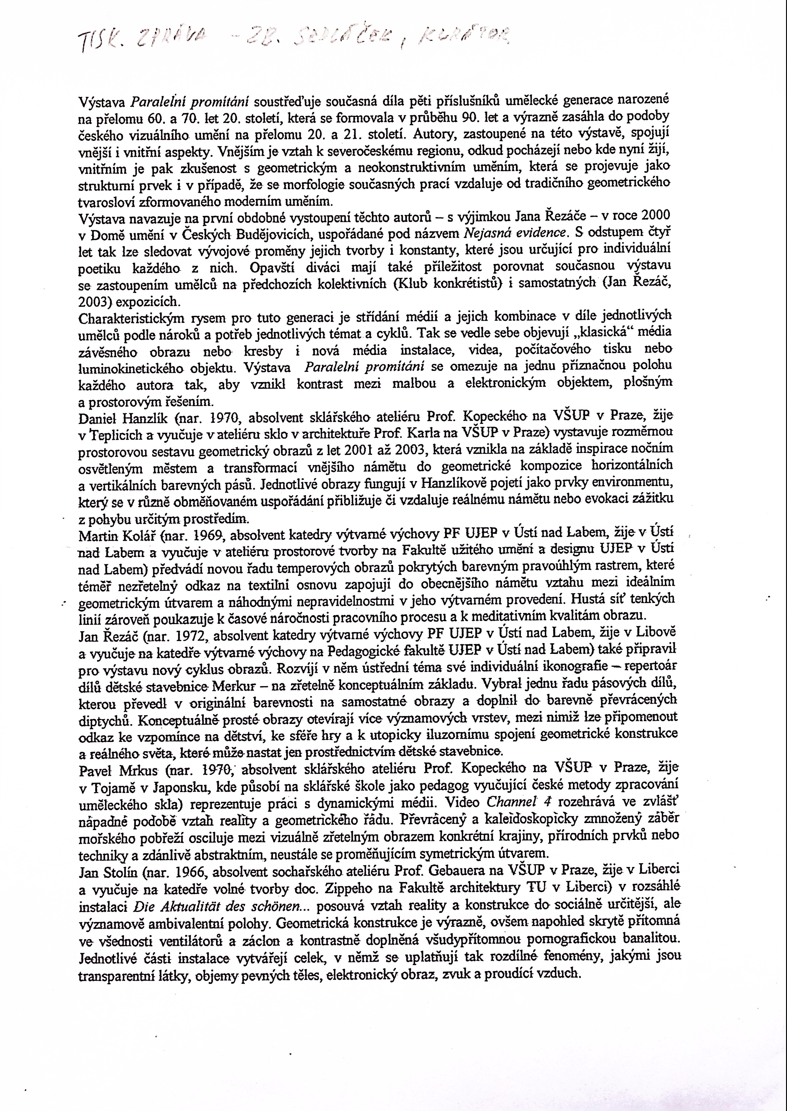 Výstava (vernisáž) kurator·ka