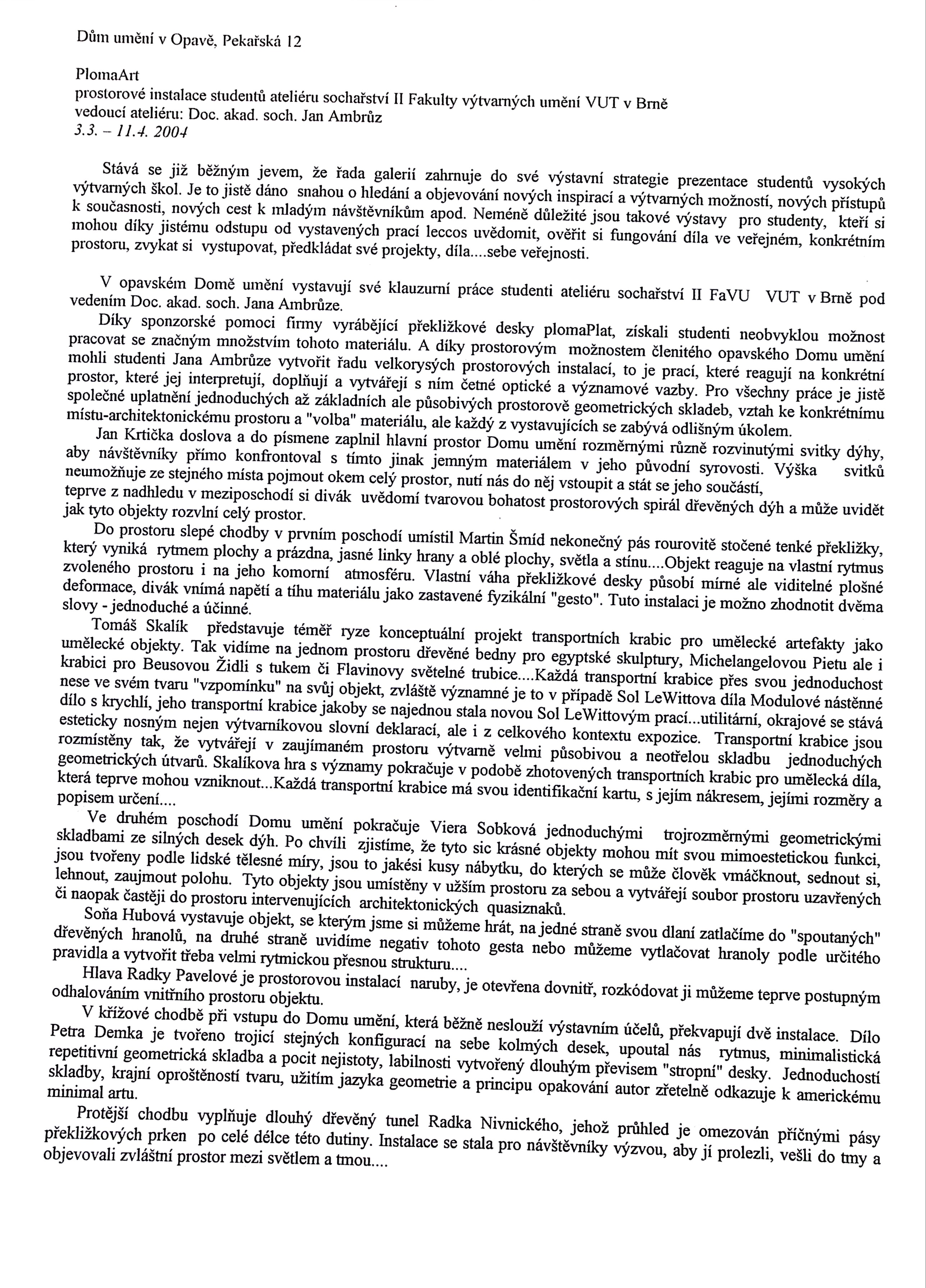 PlomaArt - Studenti Ateliéru sochařství II. FaVU VUT Brno