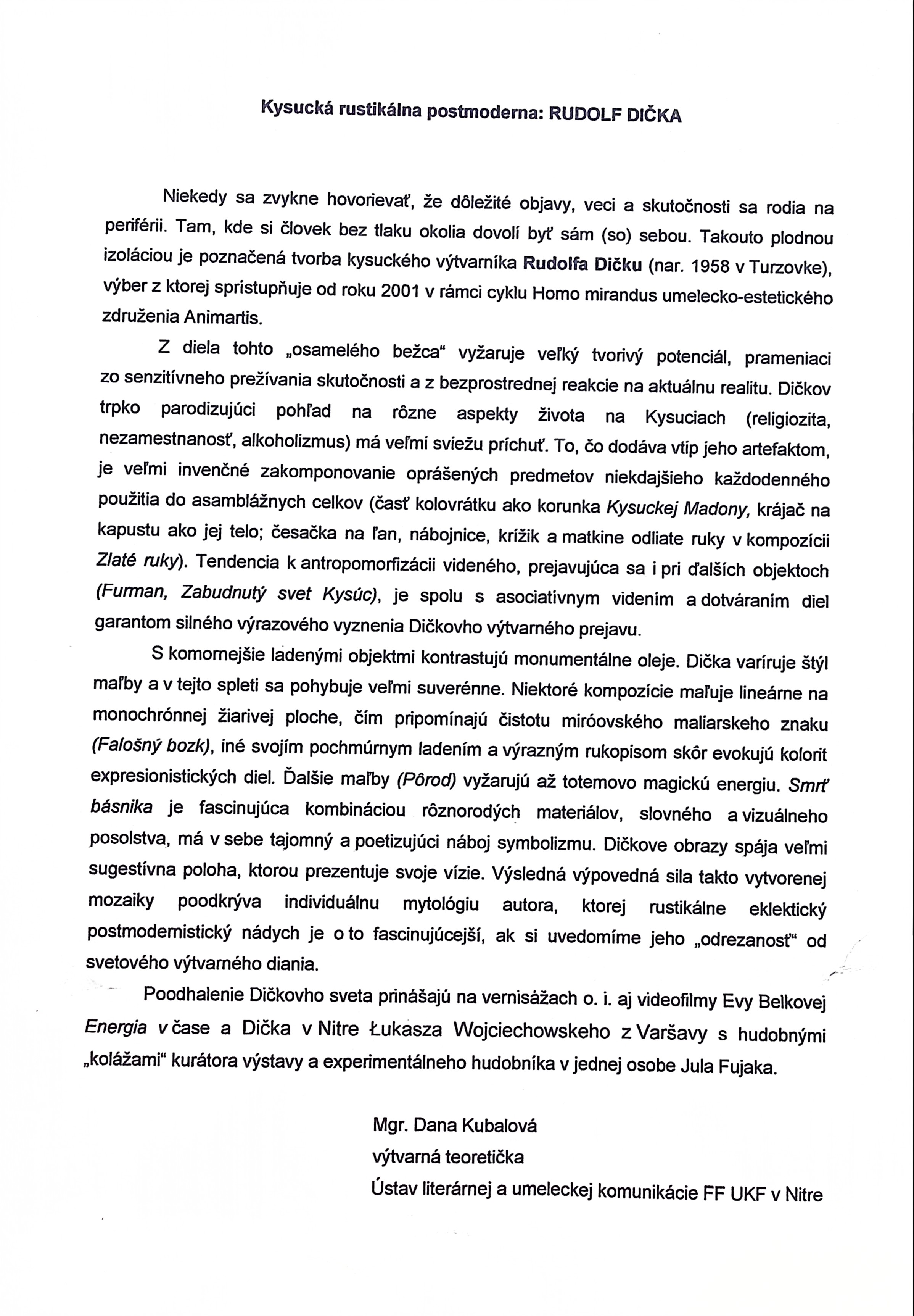 Postmutanti - kysucká rustikální postmoderna - Rudolf Dička