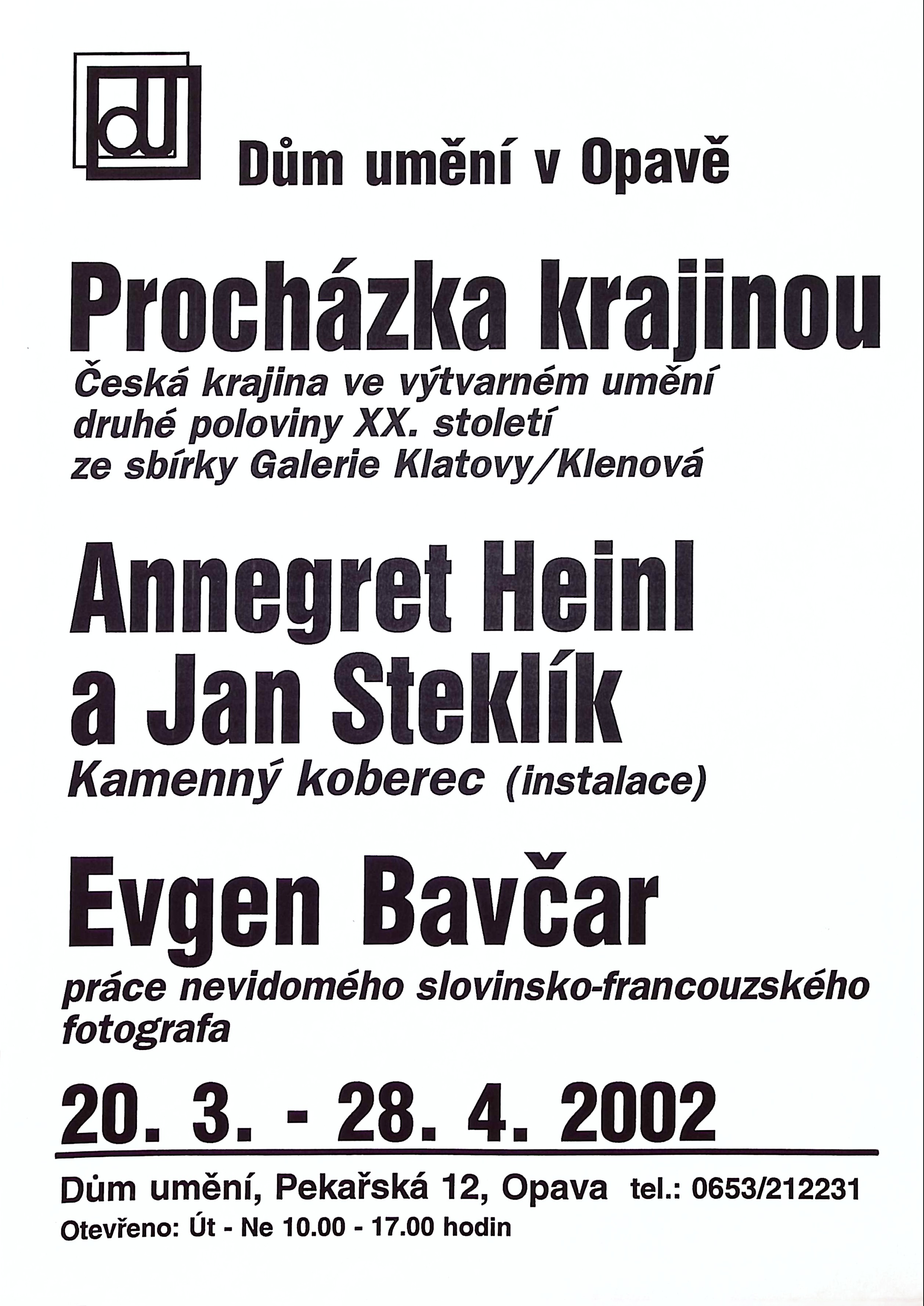 Procházka krajinou - Česká krajina ve výtvarném um. 2. pol. 20. st. za sbírky Galerie Klatovy/Klenová / Annegret Heinl a Jan Steklík - Kamenný koberec / Evgen Bavčar - fotografie