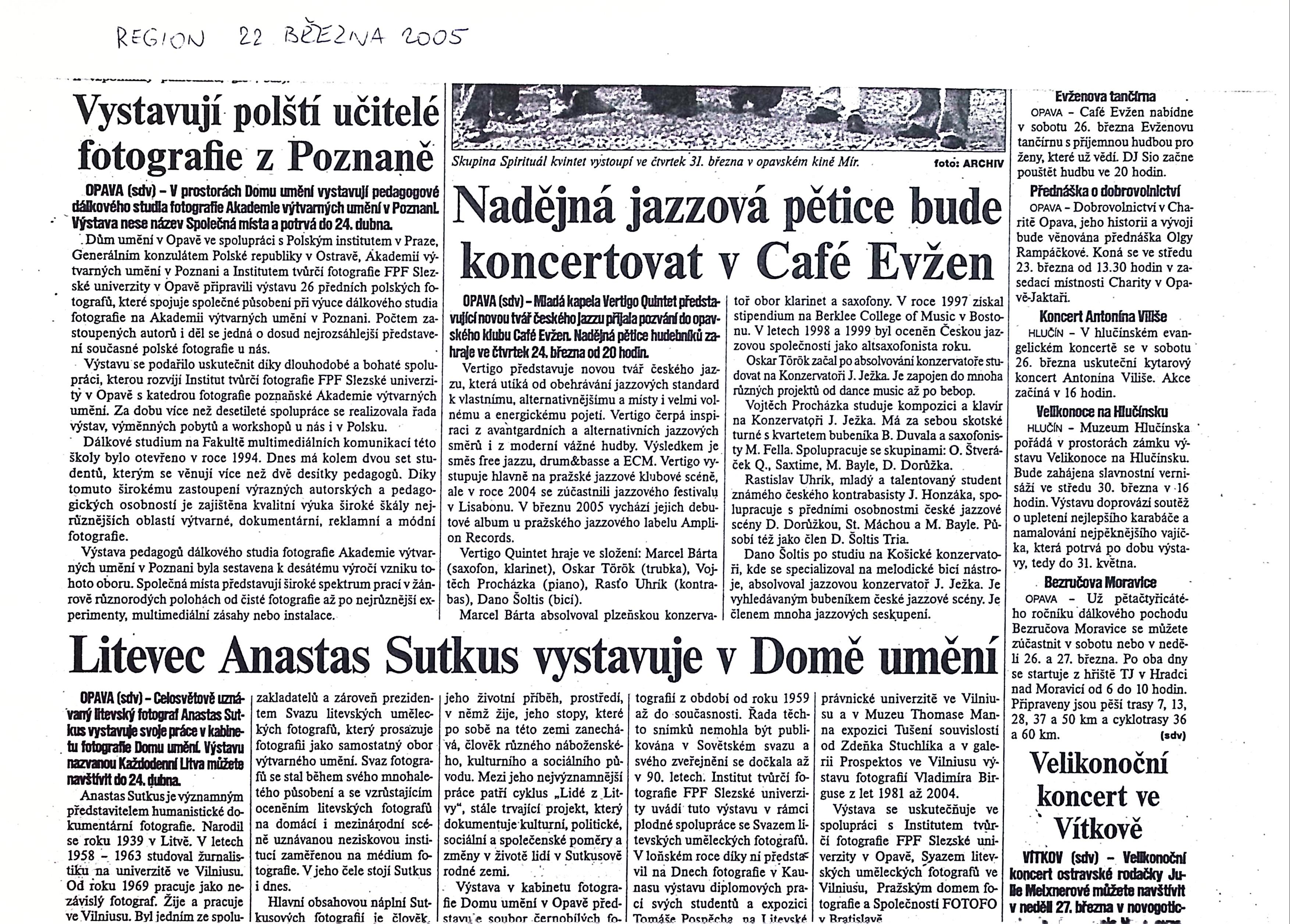 Společná místa - pedagogové AVU v Poznani - Krzysztof J. Baranowski, Andrzej P. Florkowski, Grzegorz Grzesik, Piotr Chojnacki, Piotr Kurka, Natalia LL, Monika Lisiecka, Wojciech Müller, Jerzy Olek, Janusz Oleksa, Grzegorz Przyborek, Witold Przymuszala, Józef Robakowski, Marian Schmidt, Leszek Szurkowski, Stefan Wojnecki, Piotr Woliński, Každodenní Litva - Antanas Sutkus