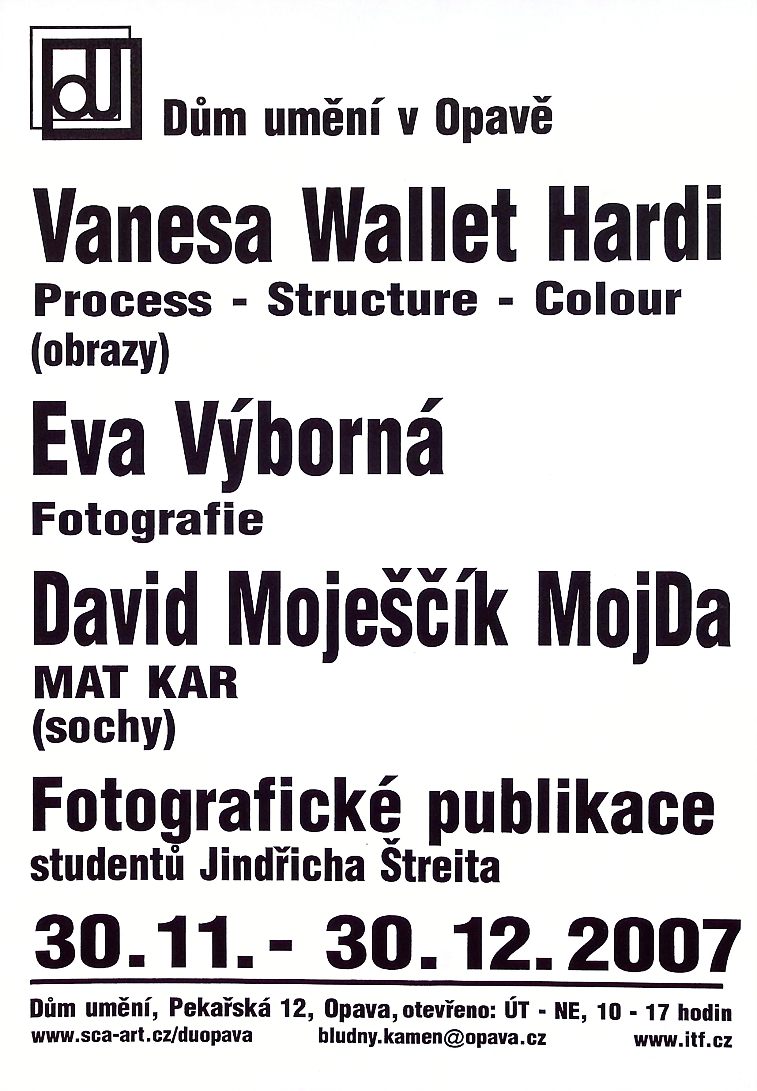 Vanesa Wallet Hardi - Process - Structure - Colour, Eva Výborná - Fotografie, David Moješčík MojDa - Mat Kar, Fotografické publikace studentů Jindřicha Štreita