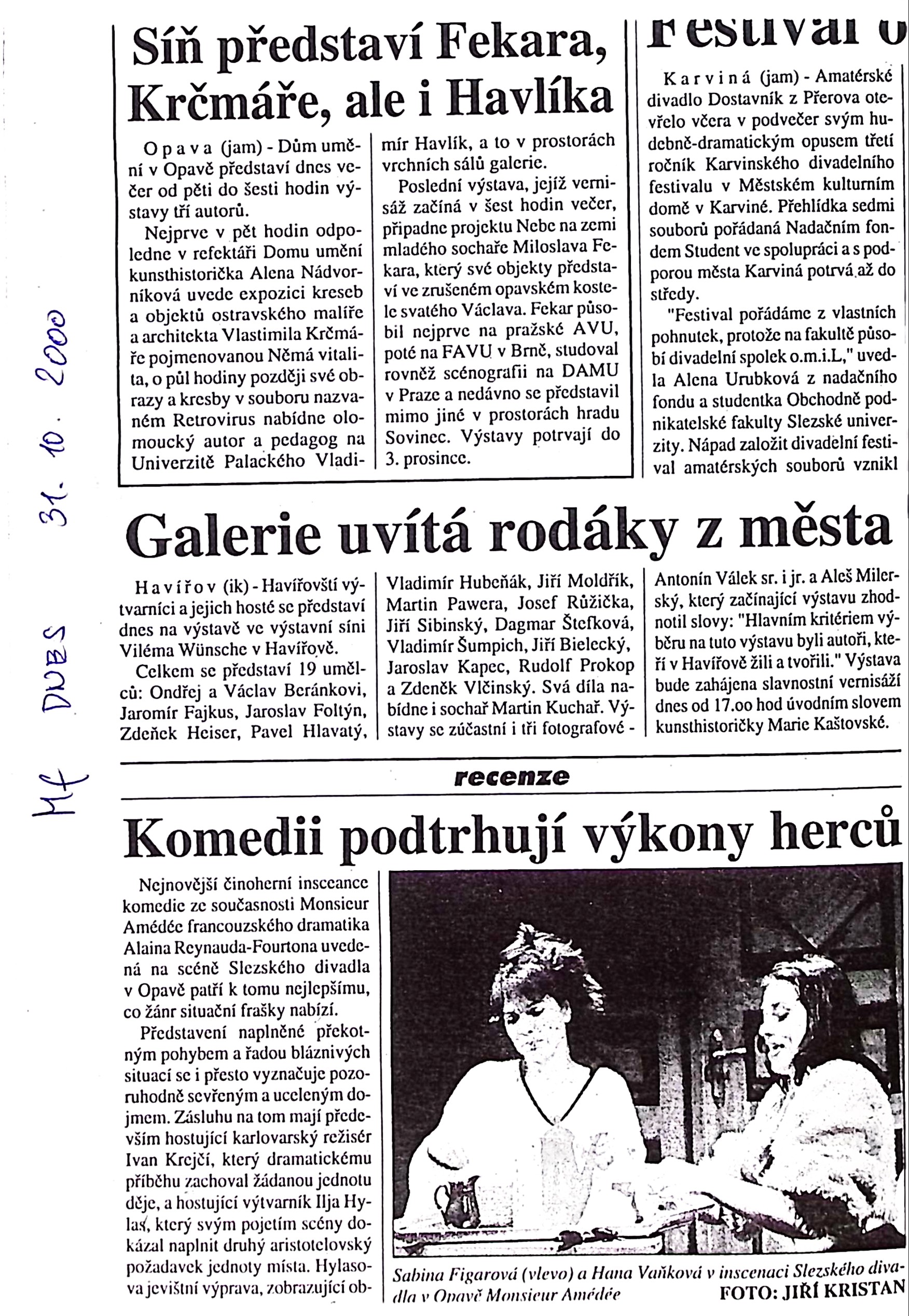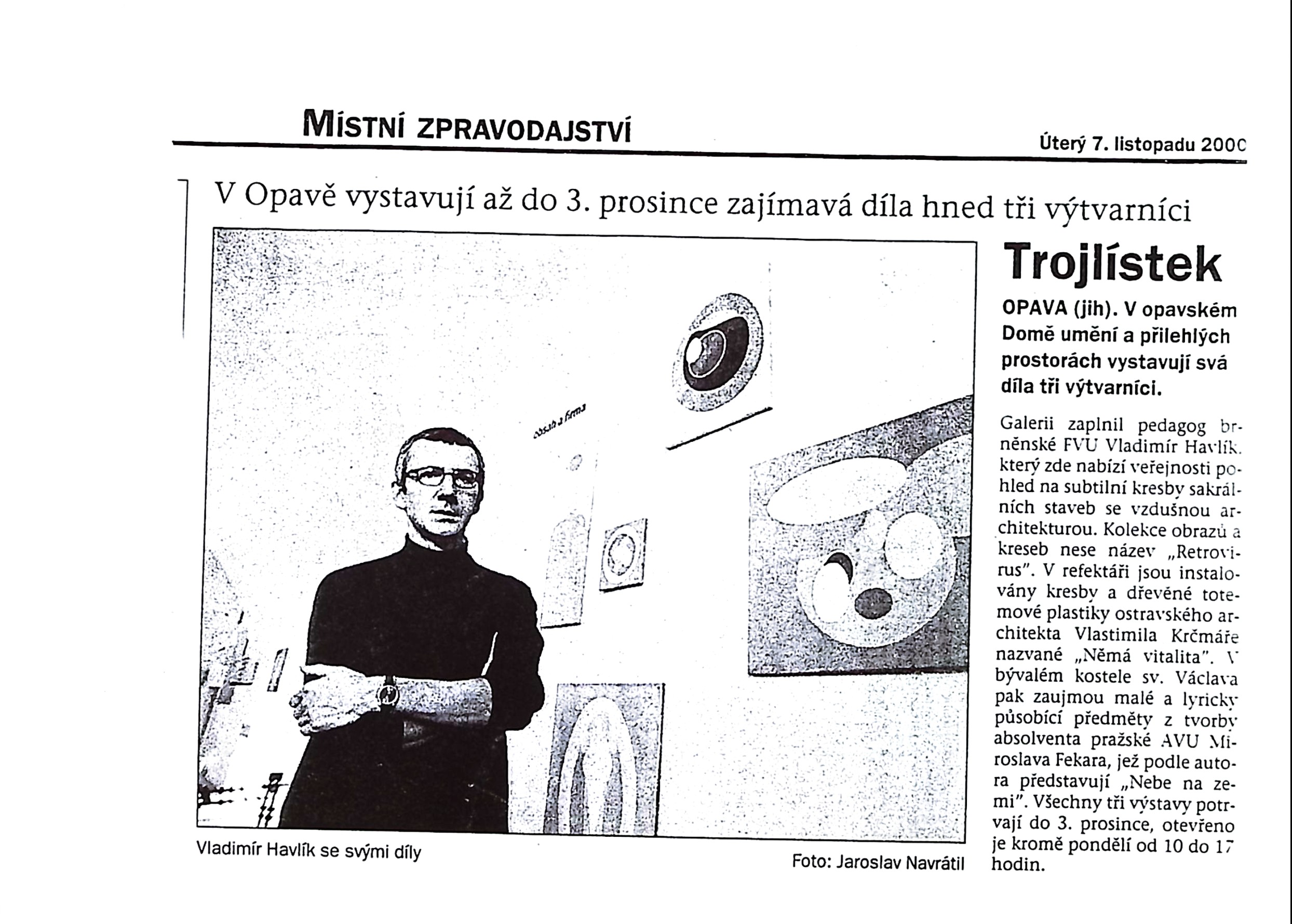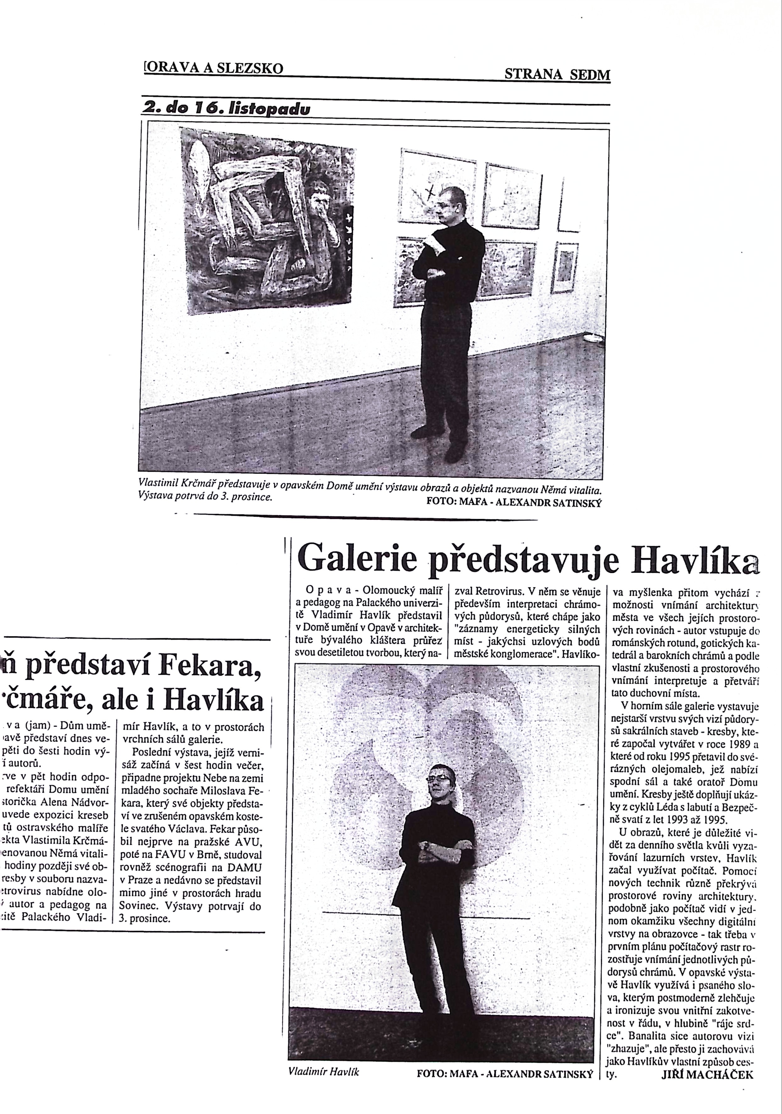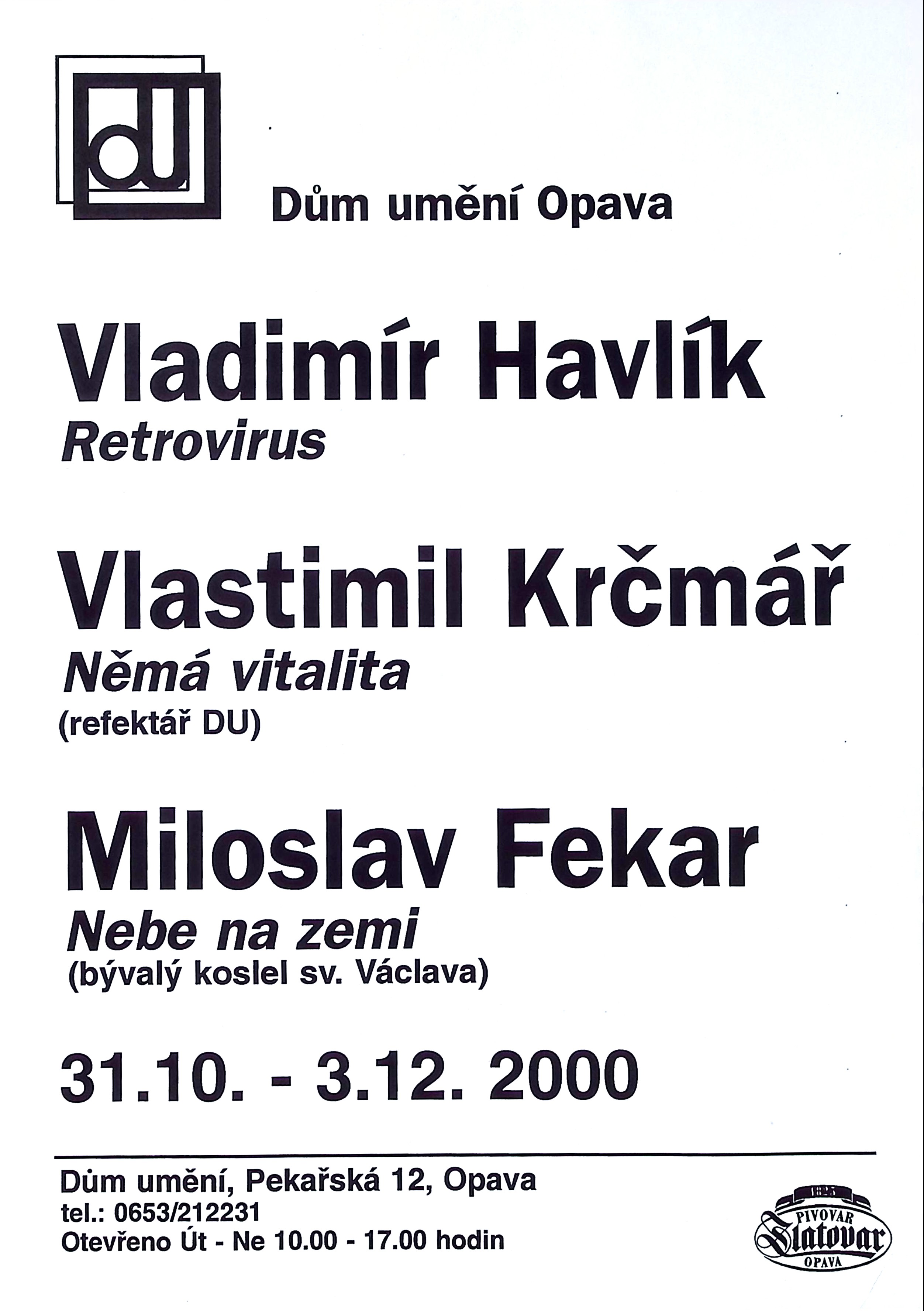 Vladimír Havlík - Retrovirus, Vlastimil Krčmář - Němá vitalita, Miloslav Fekar - Nebe na zemi