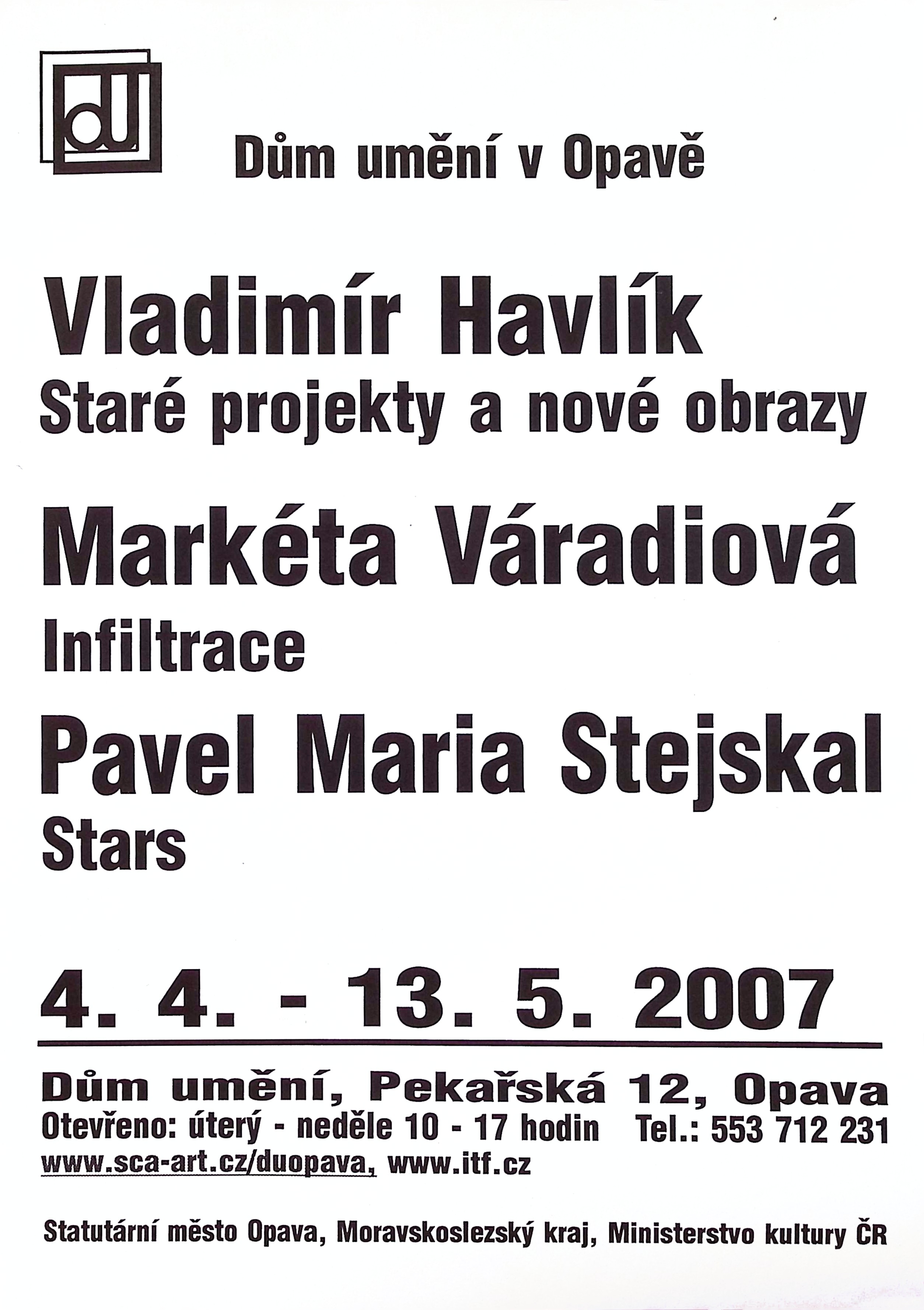Vladimír Havlík - Staré projekty a nové obrazy, Markéta Váradiová - Infiltrace, Pavel Maria Smejkal - Stars